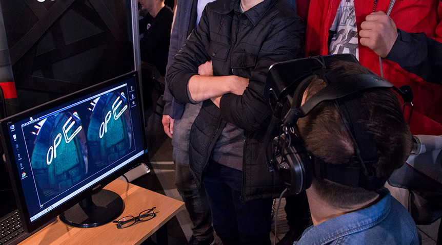 Pojechaliśmy do Poznania, aby zademonstrować wczesną wersję Alice VR podczas Poznań Game Arena. Nasz projekt spotkał się z entuzjazmem, w niemałej części ze względu na ciekawość, jaką wzbudziła wirtualna rzeczywistość. Stanęły długie kolejki, aby założyć gogle Oculus Rift i zrobić kilka kroków w starannie przygotowanym świecie Alice VR.