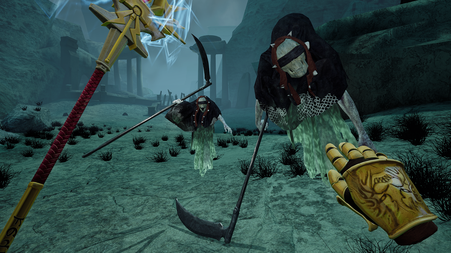 - Immersive motion-based melee and magic combat system